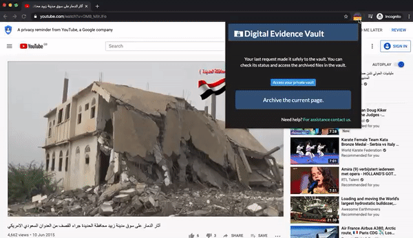 The Digital Evidence Vault plugin allows the immediate preservation of online content, which is then imported into the database automatically thanks to the integration with Uwazi.