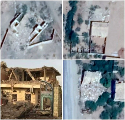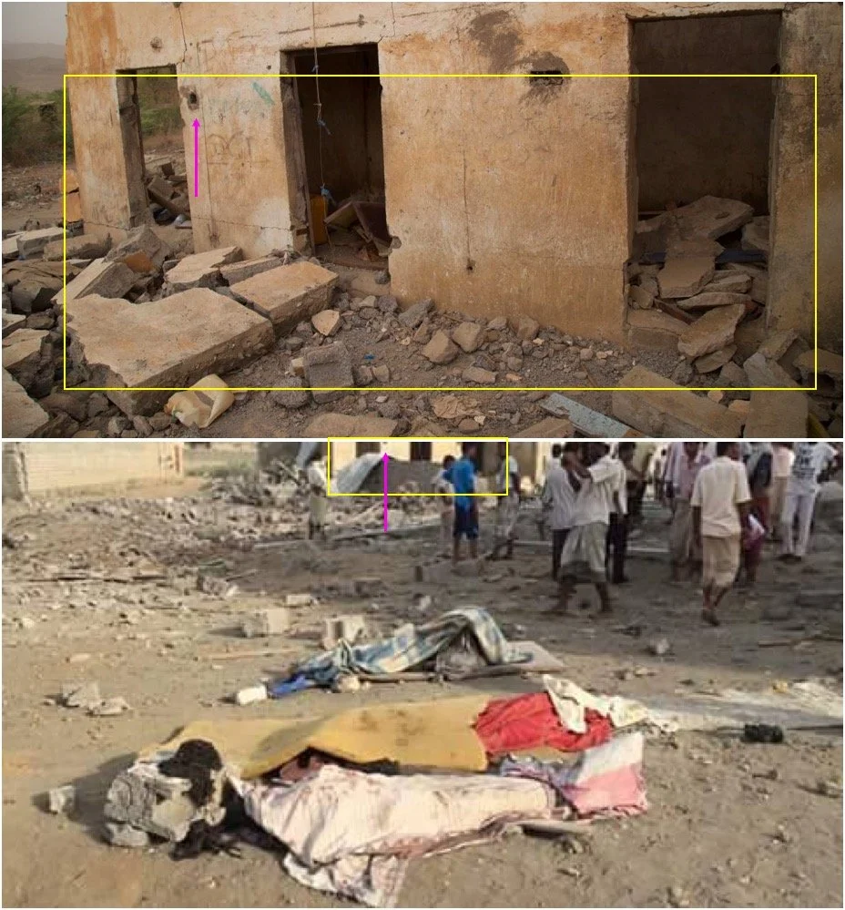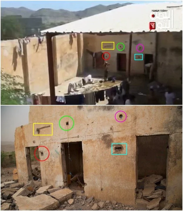 Image from this al Mersad report on the attack. Note that the dots and marks around the doorway match.