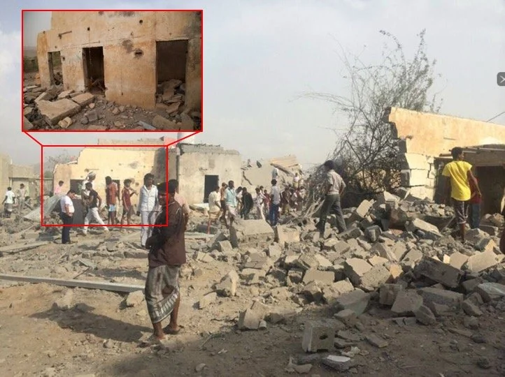 Mosnad: “three houses of the Al-Sharafi used as the headquarters of the Houthis in the region.”