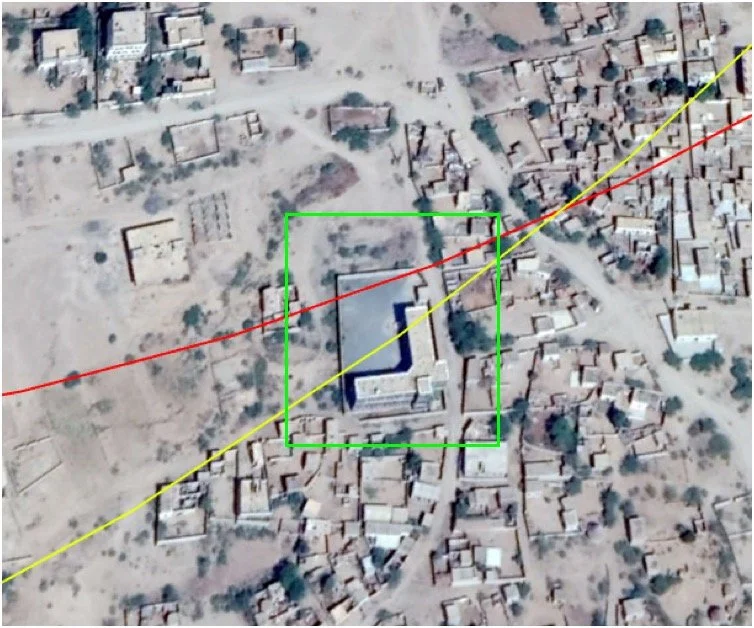 The walled compound in the green box above is located 900 meters from Building 1, and 1,300 meters from Building 2 at 15.99094, 43.20176. Based on the information provided by the JIAT in its statement, it is possible that this is the location they regard to be the prison. We could not find any information in open sources about the purpose of this building.