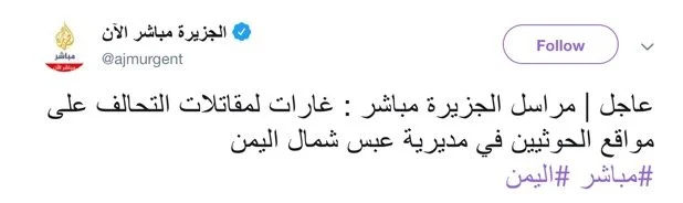 At 1538 AST Al Jazeera also stated that there was bombing in the city of Abs