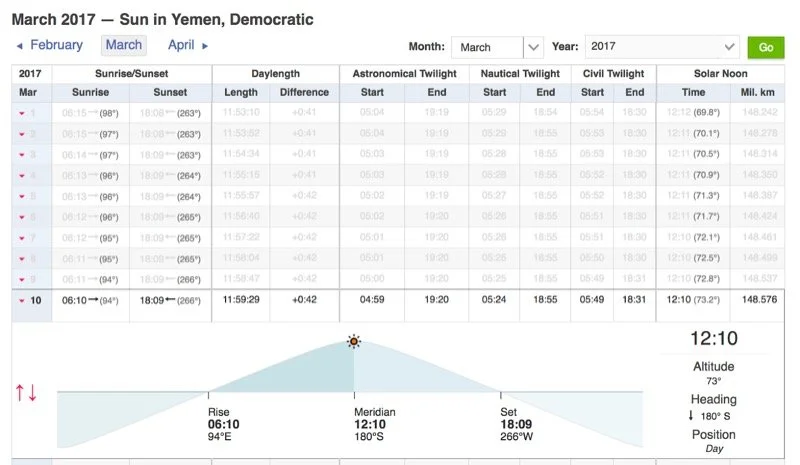 According to timeanddate.com the sunset in Yemen on 2017/03/10 was at 18:09 AST.
