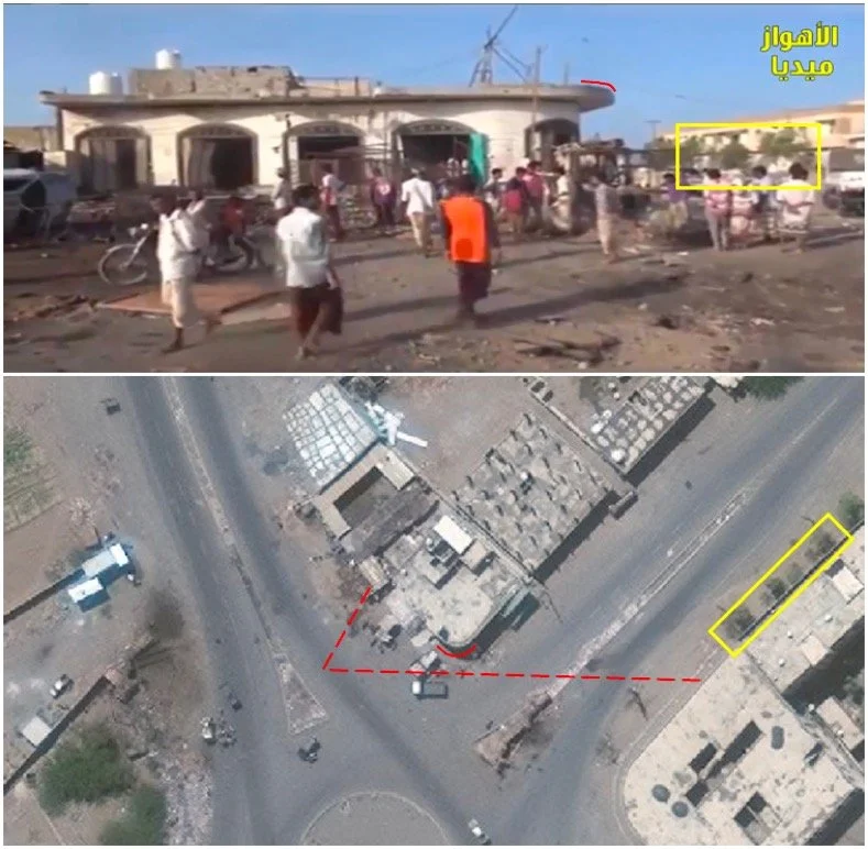 The location was a souk (market) at a main intersection (roundabout) in Hodeidah province