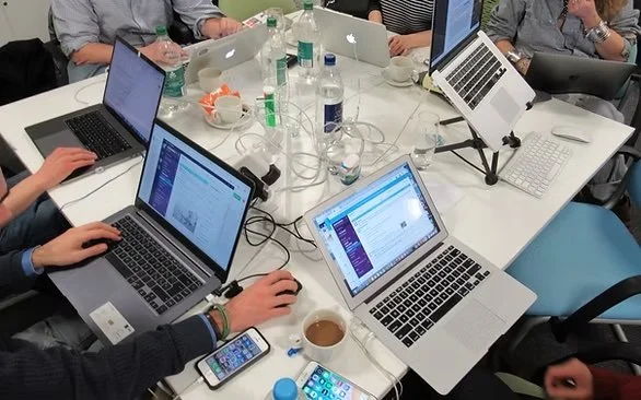 Hackathon participants collating and verifying evidence across a number of controversial airstrikes while following a methodology designed by GLAN
