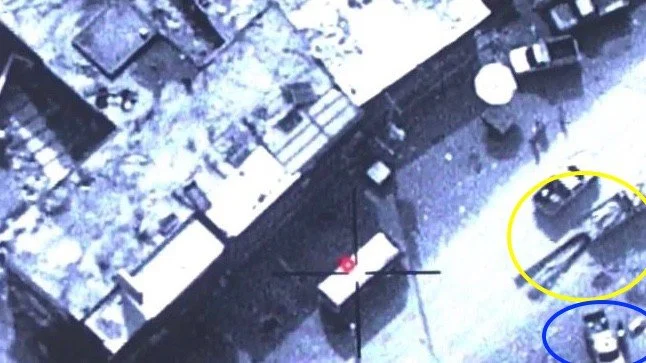 On September 1, 2018, Saudi news outlets published what appears to be an image taken by an aircraft above the location of the strike with a crosshair on top of a bus-like vehicle. Arab News published the photo accompanying an article about a JIAT statement on the incident. The image, and a second one showing the apparent aftermath of the Dahyan strike, were presented by JIAT spokesman Al-Mansour at a press briefing.