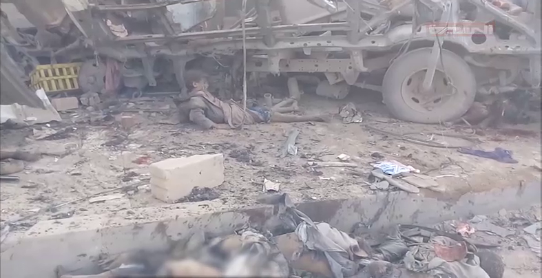 Video tweeted by Ansar Allah Media Center [bus wreckage]