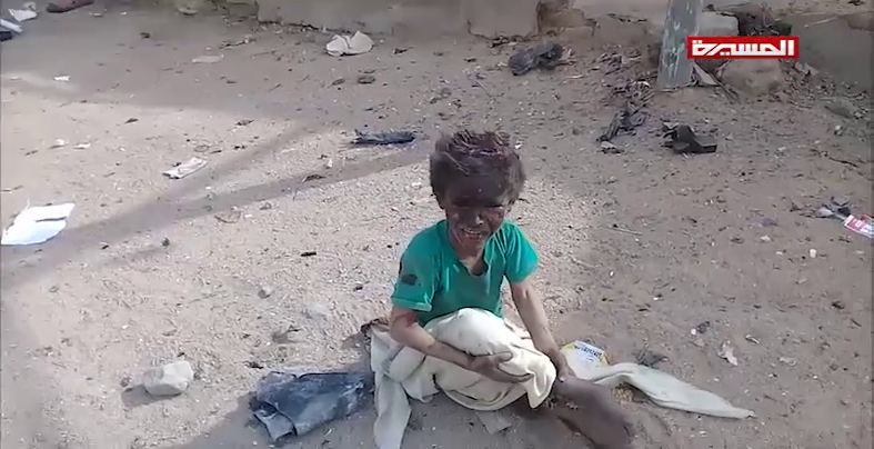 Al Masirah video 2018-08-12 [Footage of injured children and human remains]