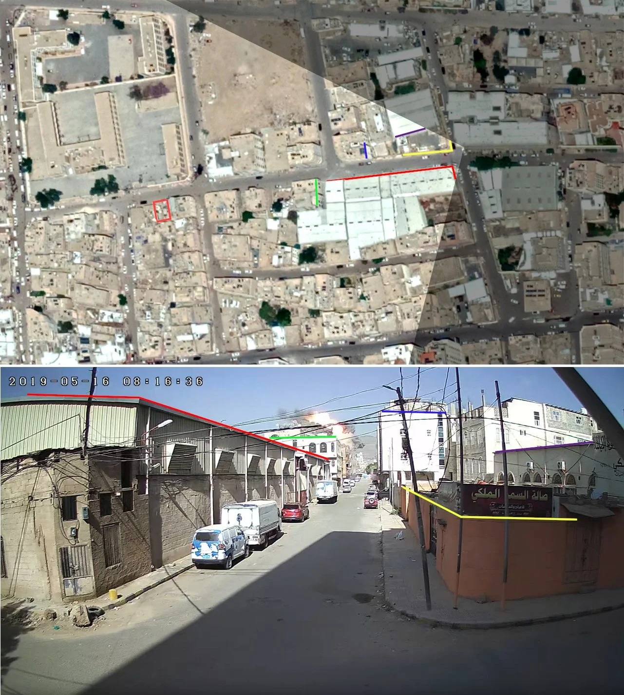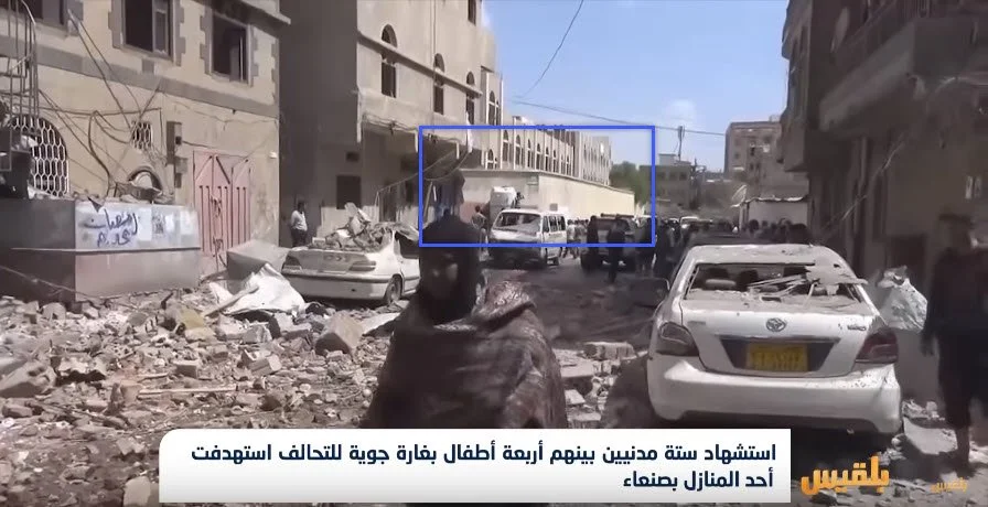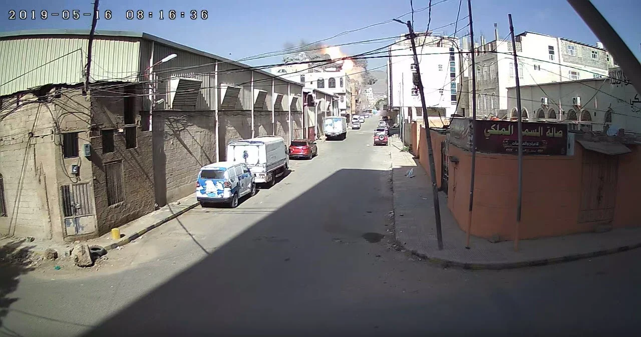 All of the available open source evidence indicates that an airstrike destroyed a residential building and damaged several others in the Raqqas neighbourhood of Sana’a on 2019/05/16 some time between 0815 and 0830 AST. CCTV footage from a camera located approximately 180 meters east of the site clearly captured the moment of the explosion. The aftermath of the airstrike was documented by citizens and the media, and widely reported by local and international outlets, the United Nations, and the SLC.
