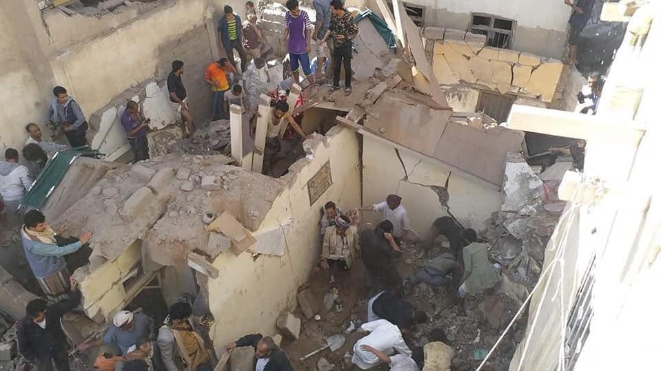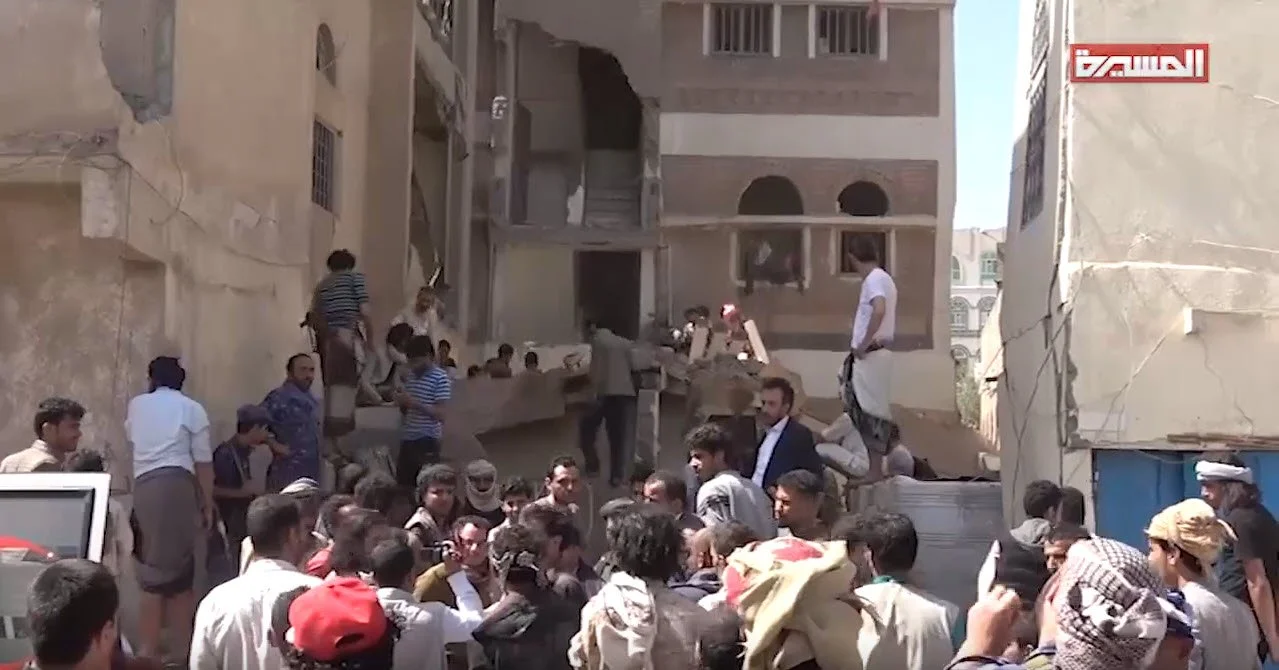 The visual evidence indicates that the airstrike levelled one building and severely damaged several others. This video from Al Masirah shows the remains of the building that was destroyed: