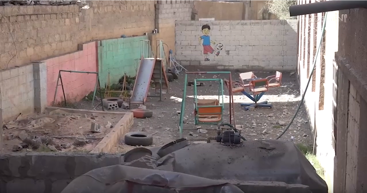A search of the Moaz bin Jabal Boy’s School Facebook page yielded a post dated 2019/05/19 condemning “aggression [a slang term for the SLC] against residential neighbourhoods” and stating that the school had recently been damaged in such an attack. The post included images of damage suffered during that event: