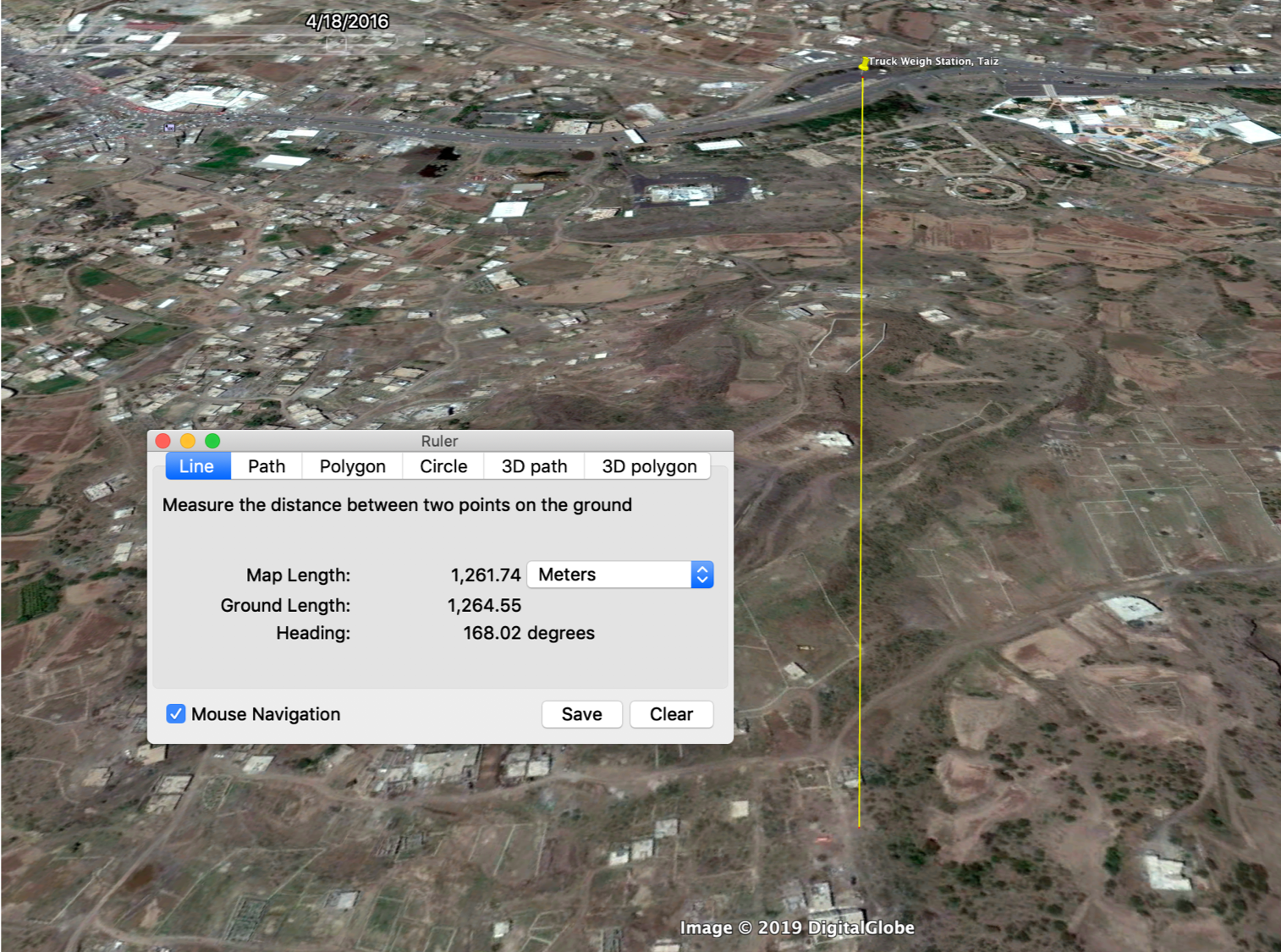 Line from camera location to truck weigh station (courtesy of Google/DigitalGlobe)