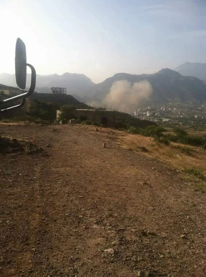 The lack of images or videos showing the moment of impact or the crater caused by this incident mean that it not possible to confirm beyond doubt that this was an airstrike. However, multiple social media posts both at the apparent time of the incident (1, 2, 3) and afterwards (1, 2, 3) state that this event was a result of an airstrike. All news reports are consistent in stating that this event was an airstrike. Images and videos from the incident appear to be consistent with an airstrike, including the image which appears to shows a large, singular dust cloud. We have therefore graded this as "likely" an airstrike.